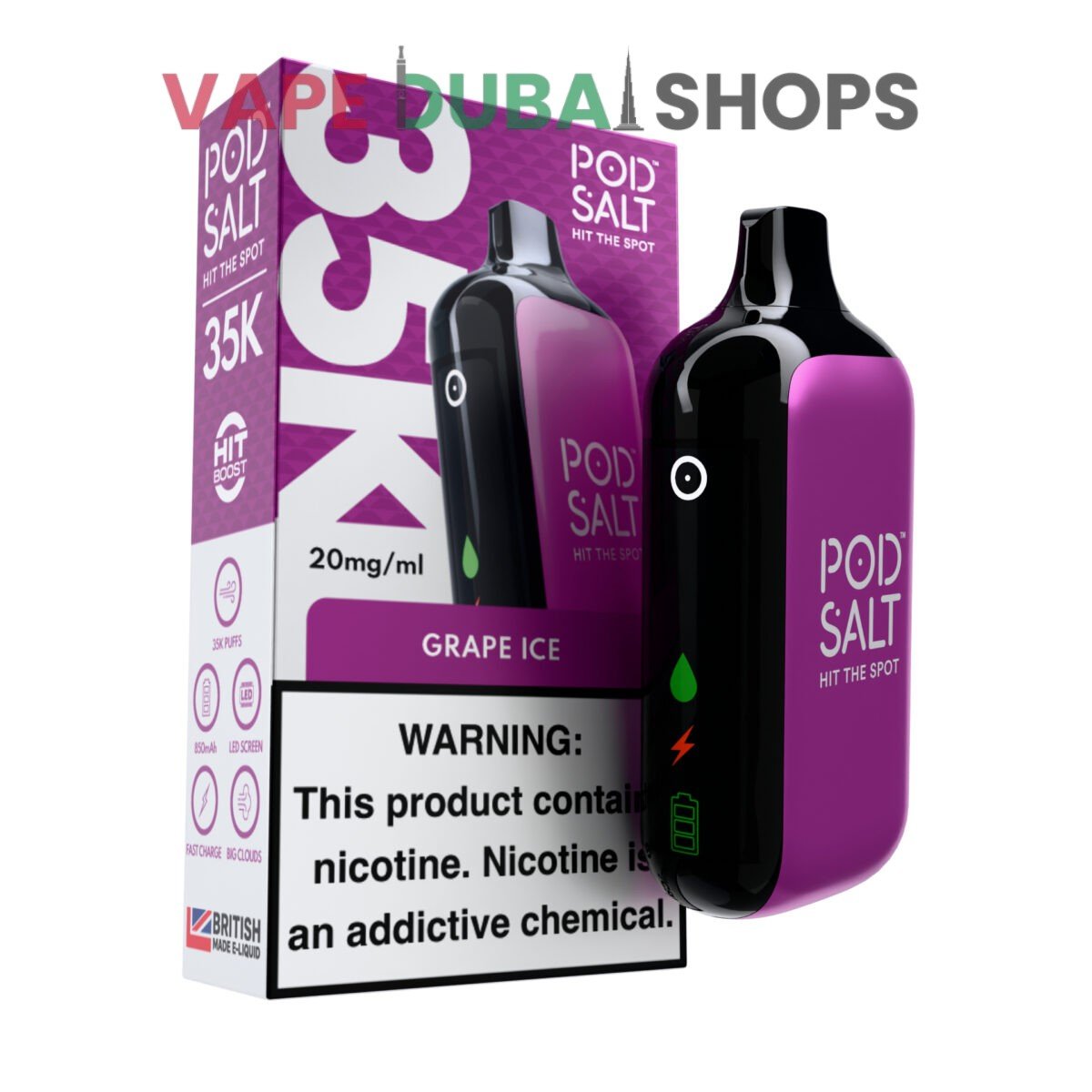 The Pod Salt 35000 Puffs 20MG Nicotine Disposable Vape is not just an iteration; it’s a revolution in the disposable market. It represents the pinnacle of endurance, technology, and flavor quality, crafted for the vaper who wants more of everything. The monumental 35,000 puff capacity sets a new industry standard, offering incredible long-term value and convenience that is simply unmatched. Paired with a large rechargeable battery and an innovative digital display, this device removes all the guesswork, providing a user-friendly and highly reliable experience. Every puff is infused with the premium quality of Pod Salt’s UK-made e-liquids, ensuring a consistently smooth and satisfying vape that other brands struggle to replicate. The wide selection of expertly crafted flavors ensures there is a perfect match for every palate.