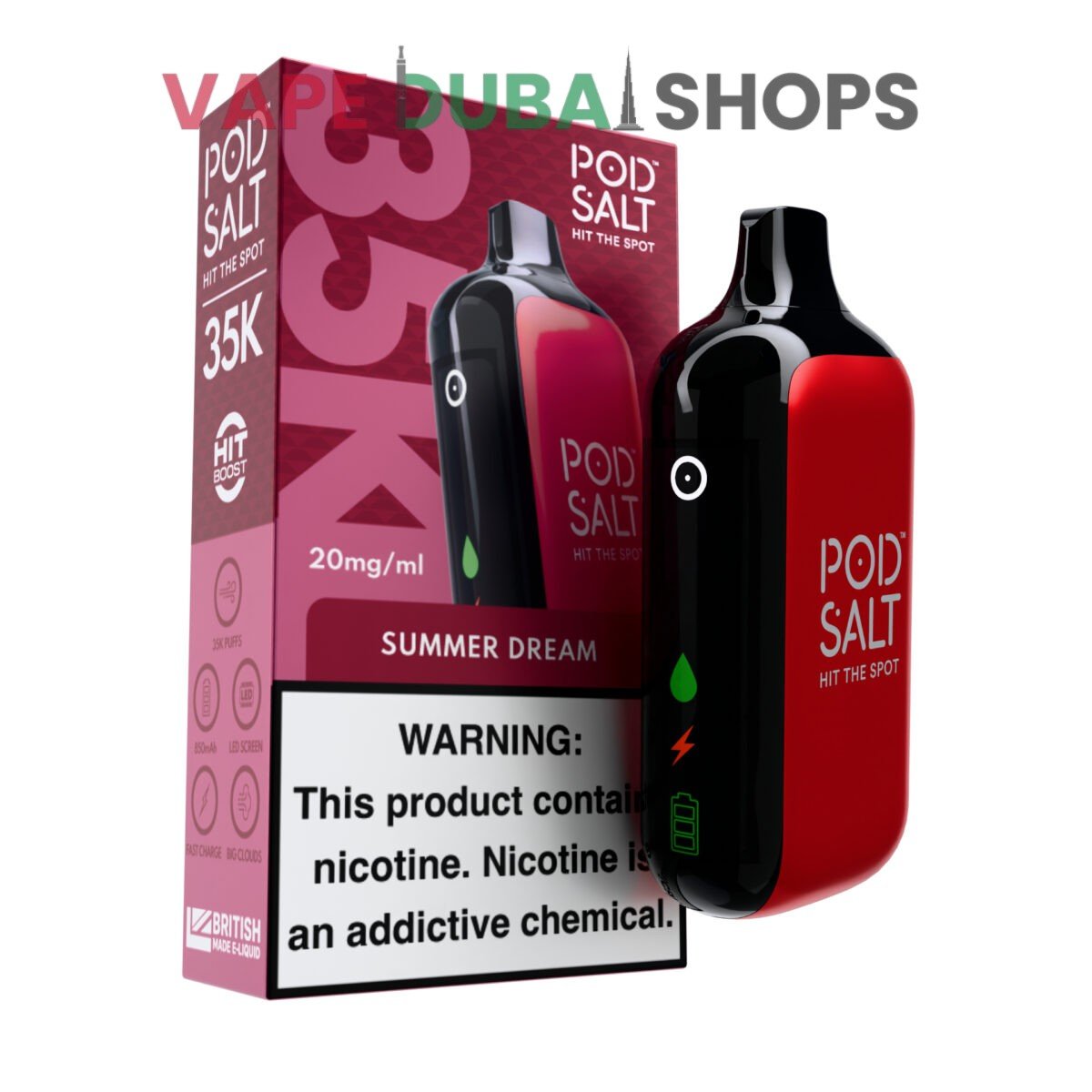 For vapers in the UAE, the Pod Salt 35000 is the ultimate solution for a hassle-free, high-performance experience that lasts. It’s the perfect investment for those looking to maximize value without sacrificing quality. Don’t settle for less. Upgrade to the pinnacle of disposable vaping technology. Order your Pod Salt 35000 from Vape Dubai Shops now and enjoy our promise of authenticity, competitive pricing, and super-fast delivery, including free shipping on eligible orders throughout Dubai.