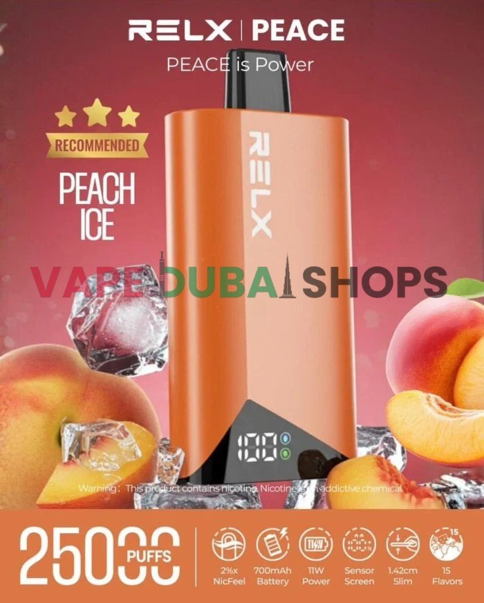 The RELX Peace 25000 puffs 20MG Disposable Vape is a top-tier vaping device offering longevity, convenience, and a variety of flavors. Its rechargeable design and advanced features make it a standout choice for vapers in Dubai. Shop now at Vape Dubai Shops and enjoy fast shipping across the UAE.