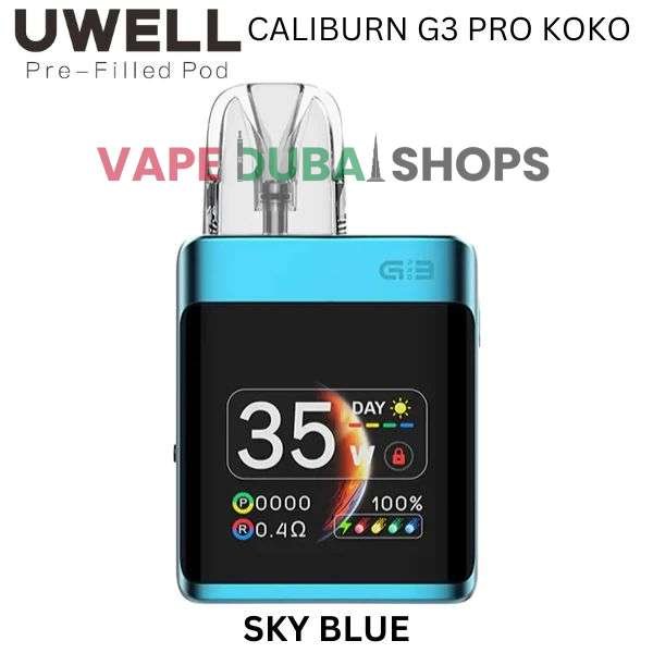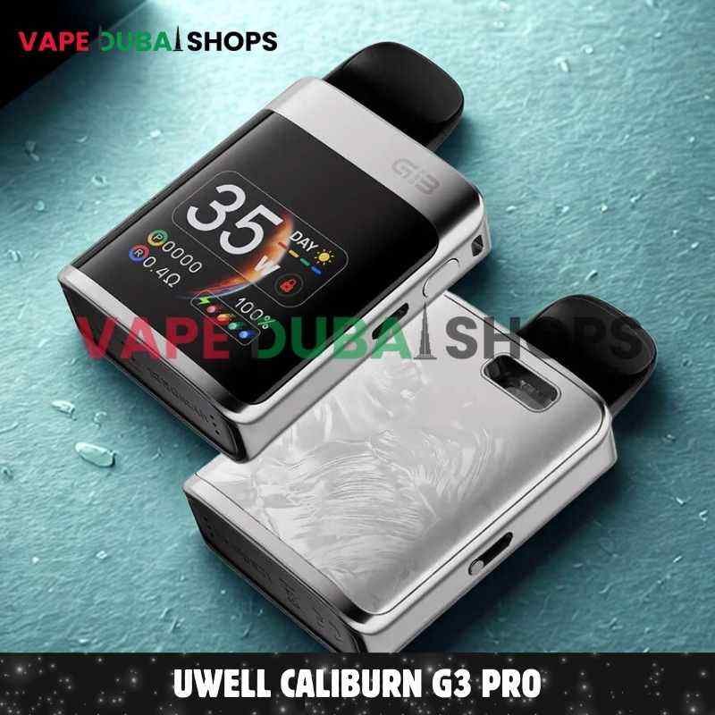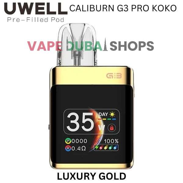 UWELL Caliburn G3 Pro Koko Pod System is a fictional, top-of-the-line device that represents the pinnacle of the Caliburn Koko series. Imagined for discerning vapers in Dubai, this “Pro” version combines the classic Koko square form factor with a premium all-metal body, a large OLED screen, and fully adjustable power.